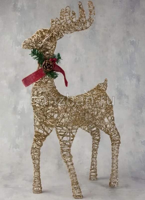 Светящийся олень с блестками— это великолепное новогоднее украшение для улицы или дома, которое добавит волшебства в вашу праздничную атмосферу. Фигура Оленя выполнена на прочном металлическом каркасе и "обшита" ажурной нитью из блёсток, что придаёт ей особый шарм.
